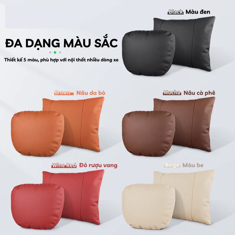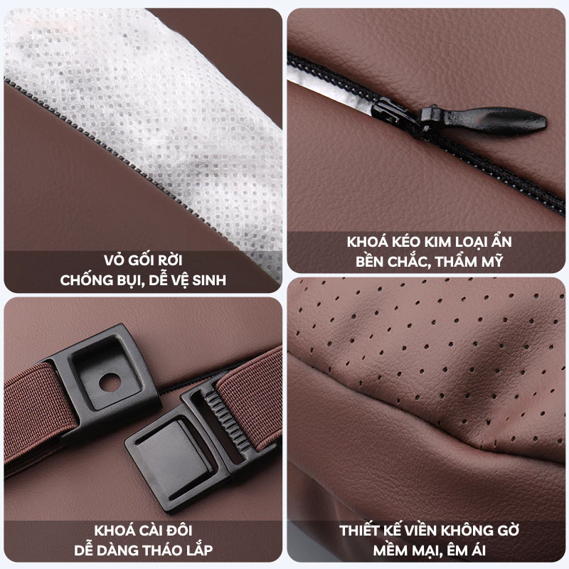 Thoải mái tối đa: Bộ sản phẩm gồm 5 áo ghế + 2 gối cao su non, giúp ngồi êm ái, đi xa không lo mỏi cổ hay đau lưng.